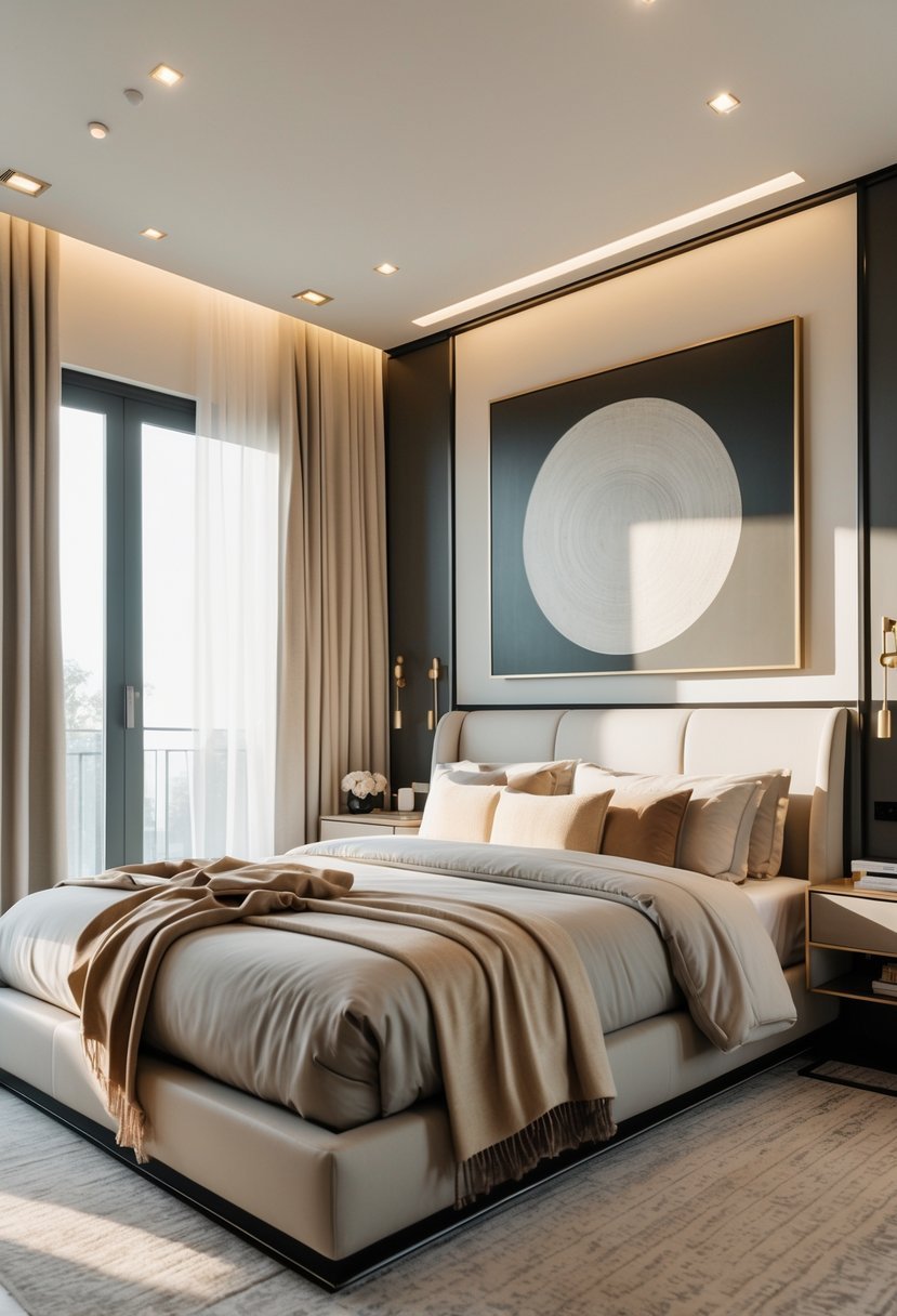 I find that a bold, single artwork above the headboard can instantly define the room’s character. Choosing a piece about two-thirds to three-quarters the width of the bed creates balance and draws attention without overwhelming the space.